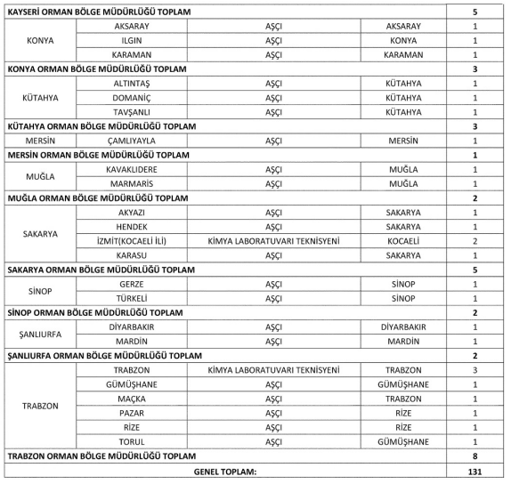 Resmi Gazetenin bugünkü sayısında Orman Genel Müdürlüğü tarafından 131 personel alımı yapılacağı duyuruldu.