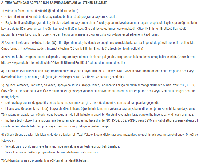 Polis Akademisi başkanlığı tarafından yapılan son dakika açıklamasında Güvenlik Bilimleri Enstitüsü'ne Lisansüstü Eğitim Programları için öğrenci alımı yapılacağına yer verildi.