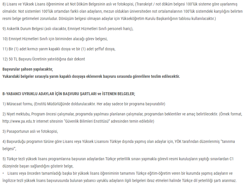 İlana başvurular yukarıdaki evraklarla birlikte şahsen yapılacak. 6 ile 17 Ağustos tarihleri arasında yapılacak başvurular için adayların müracaatlarını Güvenlik Bilimleri Enstitüsü/ ANITTEPE adresine yapması gerekmektedir.