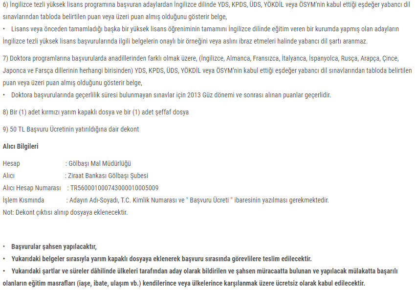 Toplamda 190 öğrenci alımı yapılacağına yer verilirken başvuru şartları şu şekilde: