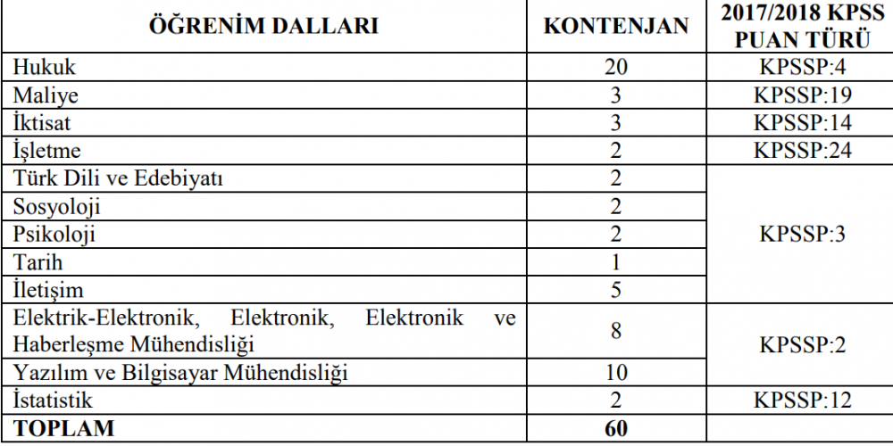 - KPSS’den, Üst Kurul tarafından ilanda belirtilen puan türlerinden en yüksek puanı alan adaydan başlamak üzere yapılan sıralamada, ataması yapılacak uzman yardımcısı kadro sayısının dört katına kadar aday arasına girmiş olmak (Son sıradaki adayla aynı puana sahip olan adaylar da sınava kabul edilecektir.),