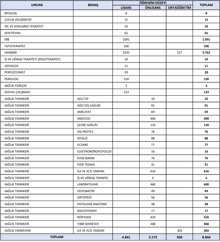 - SAĞLIK PERSONELİ POZİSYONLARI (LİSANS MEZUNLARI İÇİN)