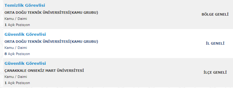 Yukarıdaki linke tıklayın. Açılan sayfada iş arayan kısmından giriş yapın. Daha sonra karşınıza çıkan ekranda İŞ İLANLARI yazan butona tıklayın. Açılan iş arama sayfasında ise İŞYERİ TÜRÜ yazan kısımda KAMU seçeneğini işaretleyip ARA butonuna tıklayın. İlanlar aşağıda sıralanacaktır.