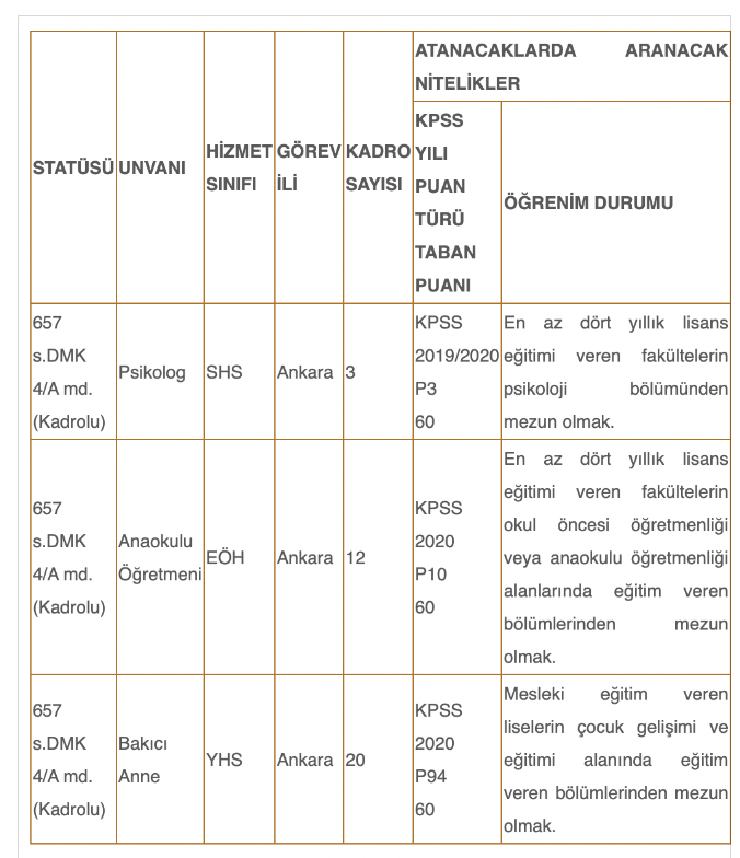 Duyuruda ilgili aklım için başvuruların 5-7 Temmuz 2021 tarihinde alınacağına yer verilirken başvuru yapacak adayların ilan edilen unvanlara göre belirlenen özel şartları da yerine getirmesi gerektiği kaydedildi.