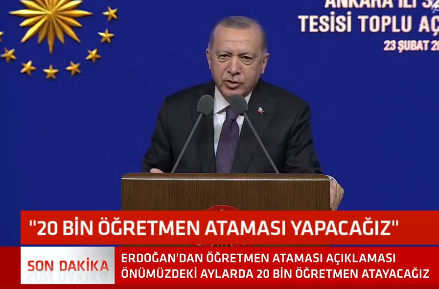 Son dakika haberi: Cumhurbaşkanı Recep Tayyip Erdoğan yaptığı açıklamada 20 bin öğretmen ataması yapılacağını söyledi.