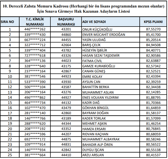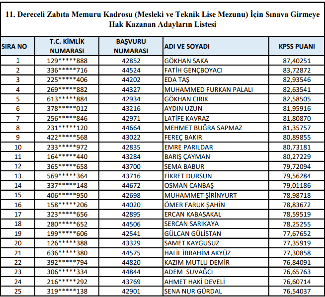 Sonuçların açıklanması ile zabıta alımında mülakata gireceklerin isim listeleri belli oldu.