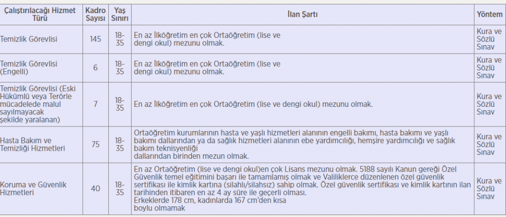 Bugün Yayımlandı! Kadrolu Güvenlik Görevlisi, Temizlik Görevlisi, Hasta Bakım ve Temizliği Hizmetleri Personeli Alınacak