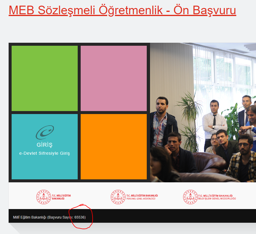MEB ilkatama sayfasında sözleşmeli öğretmenliğe başvuru yapan aday sayısına yer verildi. Şimdiye kadar 65 bin 536 kişi başvuru yaptı. Siz de aşağıdaki yorum kısmından KPSS puanınızı ve başvuru yaptığınız branşı yazarak diğer adaylarla bilgi alış verişinde bulunabilirsiniz.