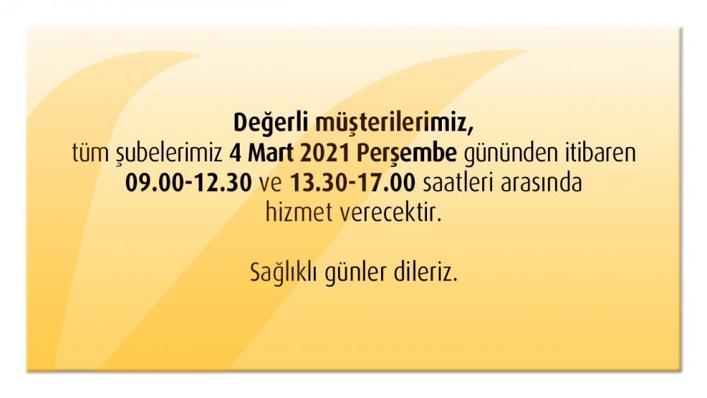 Halkbank tarafından yapılan açıklamada da banka mesai saatlerinin değiştiğine yer verildi. Açıklamada bankanın 09.00-12.30 ve 13.30-17.00 saatlerinde çalışacağına yer verildi.