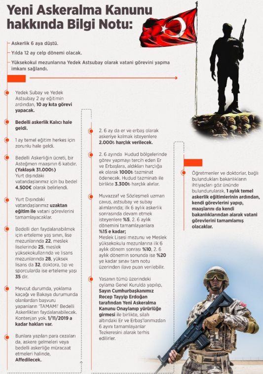 TBMM Genel Kurulu’nda 335 milletvekilinin oyuyla kabul edilen Askeralma Kanunu dün akşam Cumhurbaşkanı Recep Tayyip Erdoğan tarafından da onaylandı, daha sonra Resmi Gazete'de yayımlandı.