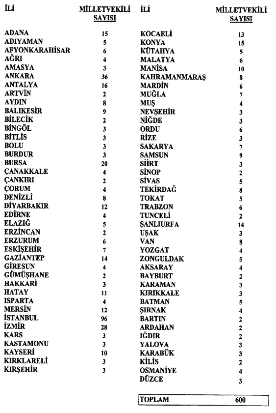 ÜÇ ŞEHİRDE MİLLETVEKİLİ SAYISI ARTTIRILDI