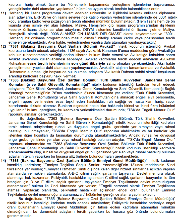 - Tercih edilecek kadrolar için aranan diğer başvuru ve atanma şartlarını taşımak