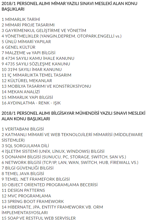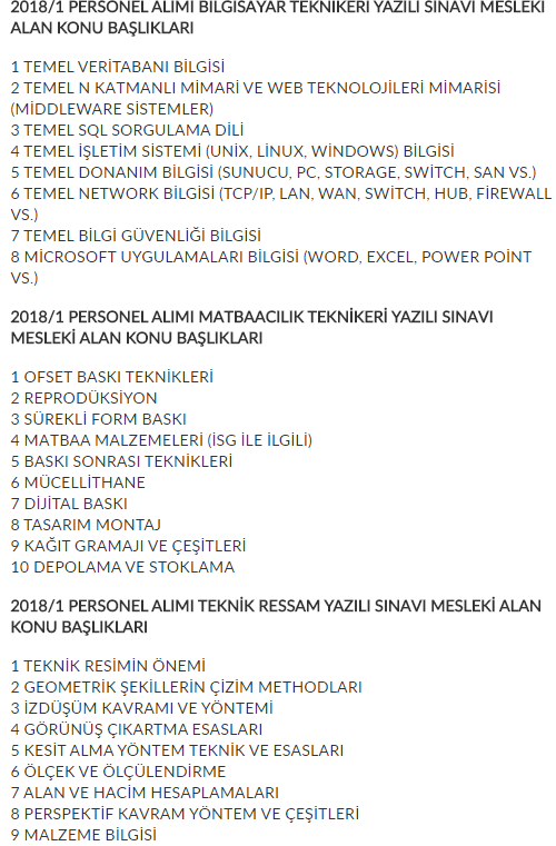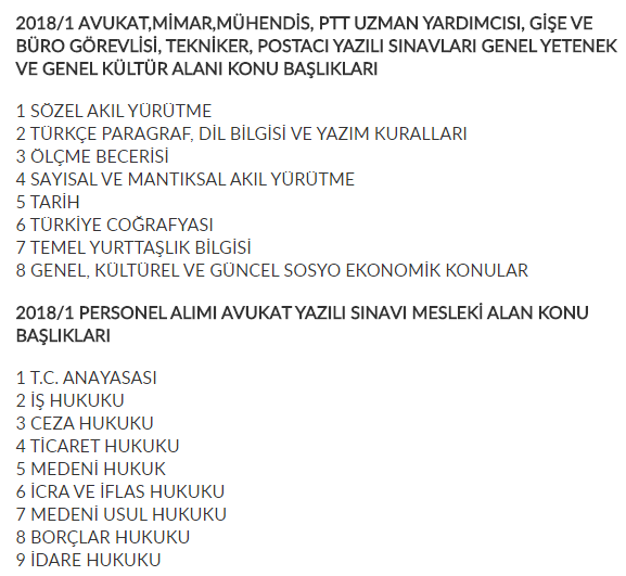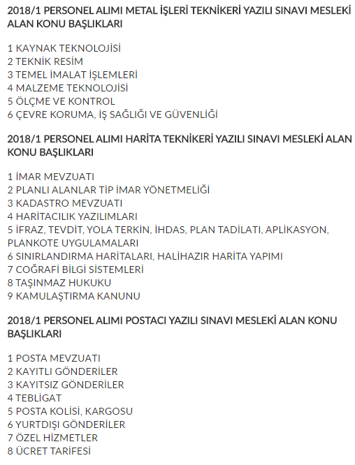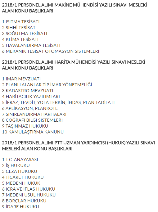 PTT personel alımında adaylara sorulacak soruların konuları şu şekilde;