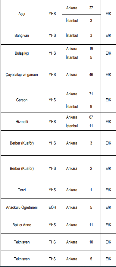 Meclise yapılacak personel alımında kadrolar şu şekilde açıklanmıştı: