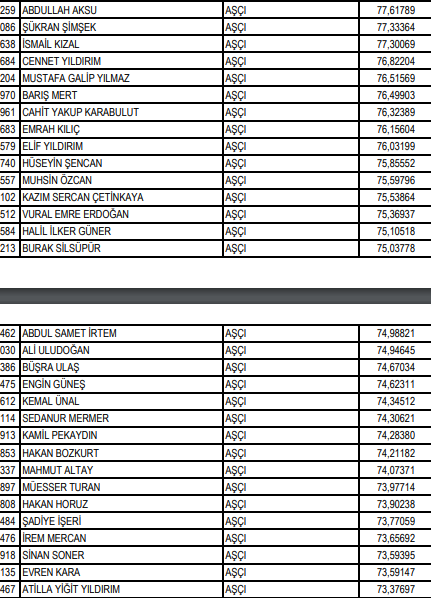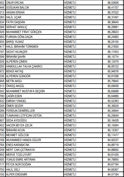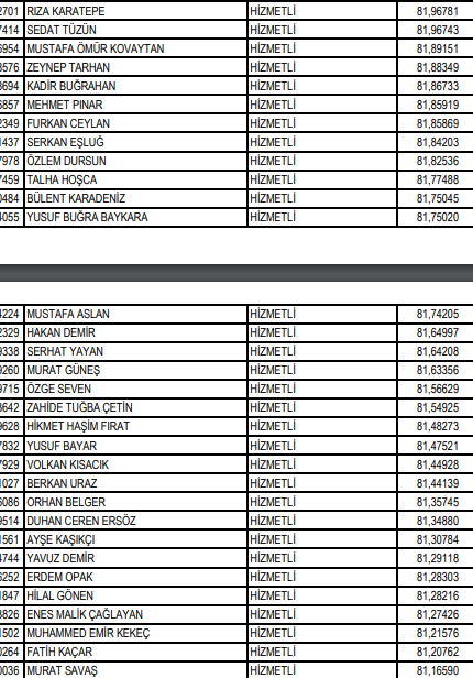 Her kadro için KPSS taban puanı şu şekilde oldu: