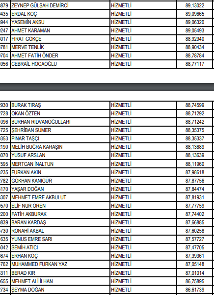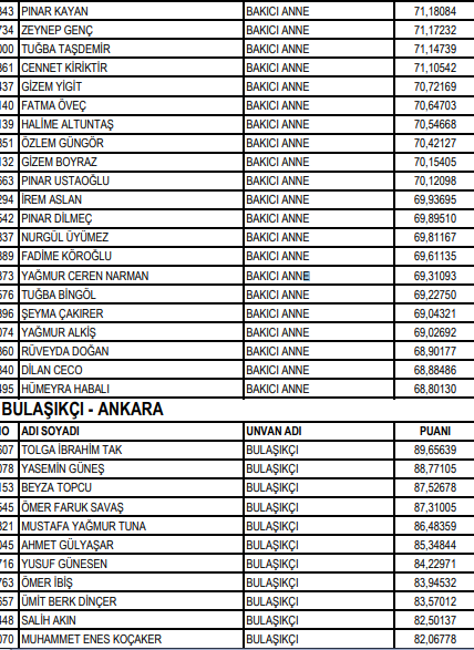 Türkiye Büyük Millet Meclisi Başkanlığı İdari Teşkilatında İlk Defa Göreve Başlayacaklar İçin Yapılacak Sınavlar Hakkında Yönetmelik hükümleri doğrultusunda Kurumumuzun personel ihtiyacını karşılamak amacıyla farklı unvanlarda (298) kadro için açılan sınava başvuruda bulunan ve sınav ilanında belirtilen şartları taşıyan adaylardan, kadro unvanları itibarıyla KPSS puanlarına en yüksek puan alan adaydan başlanarak ilan edilen kadro sayısının üç katı aday (son sıradaki adayla aynı puana sahip olan diğer adaylar dâhil) aşağıda belirtildiği şekilde tespit edilmiştir.