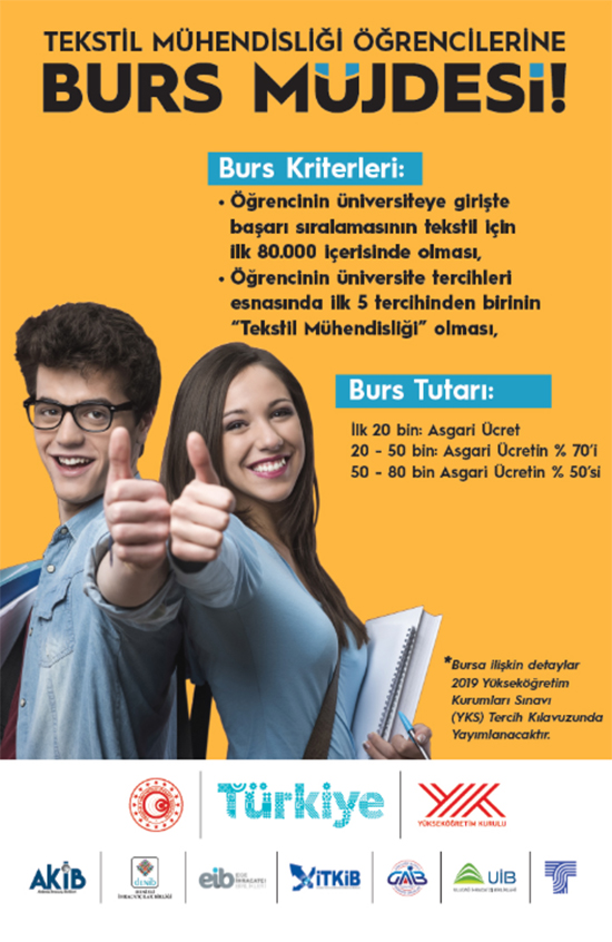 İstanbul Tekstil ve Hammaddeleri İhracatçıları Birliği tarafından konu ile ilgili yapılan açıklamada YKS sonucuna göre ilk 80 bin içinde olup da, ilk beş tercihinden birisi Tekstil Mühendisliği olan gençlere, aday ilk 20 binde ise asgari ücret (2020 TL) kadar, ilk 20 ila 50 bin arasında ise asgari ücretin yüzde 70 'i kadar (1414 TL), ilk 50 ila 80 bin arasında ise asgari ücretin %50'si kadar (1010 TL) burs verilececeği bildirildi.