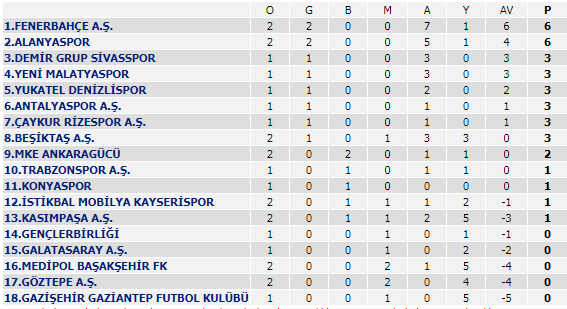 Fenerbahçe: Altay, Ozan, Zanka, Jailson, Dirar, Tolga, Emre, Deniz, Rodrigues, Kruse, Vedat Muriç.