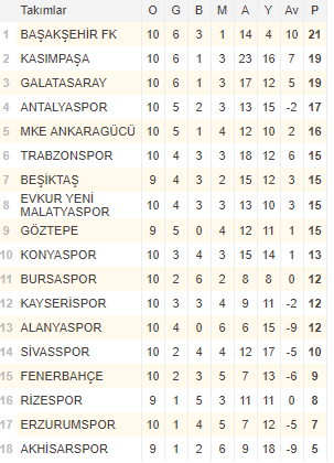 SÜPER LİG PUAN DURUMU