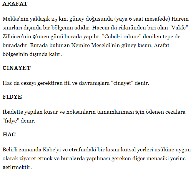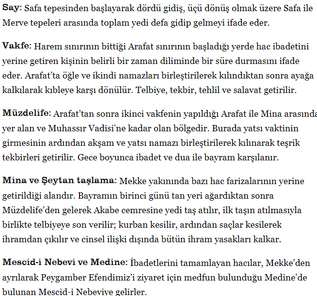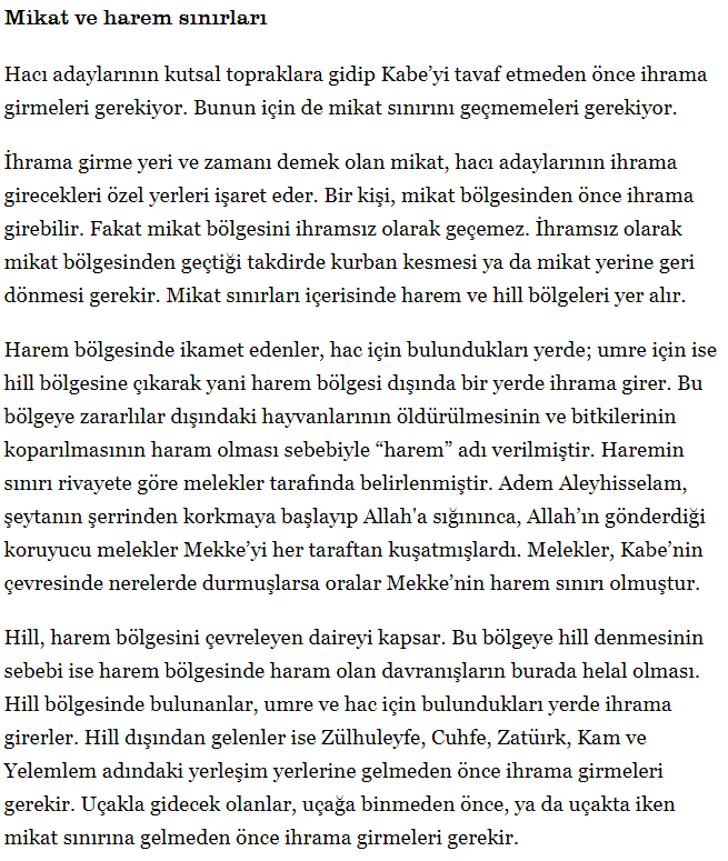 Mikat: İhram’a girmek için belirlenen 5 noktaya mikat adı verilir. 1- Zülhuleyfe 2-Cuhfe 3-Zatüır 4-Karnülmenazil 5-Yelemlem