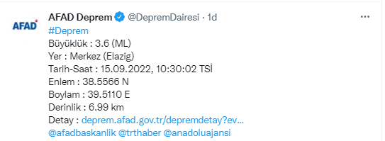 Son Dakika. Elazığ’da korkutan bir deprem meydana geldi. Depremin şiddeti 3.6 olarak ölçüldü.