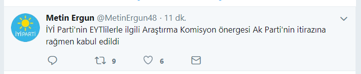 Yeni kanun tekliflerinin TBMM'ye sunulması , EYT konusunda komisyon oluşturulmasına yönelik çalışmalar yapılacağı öğrenildi.