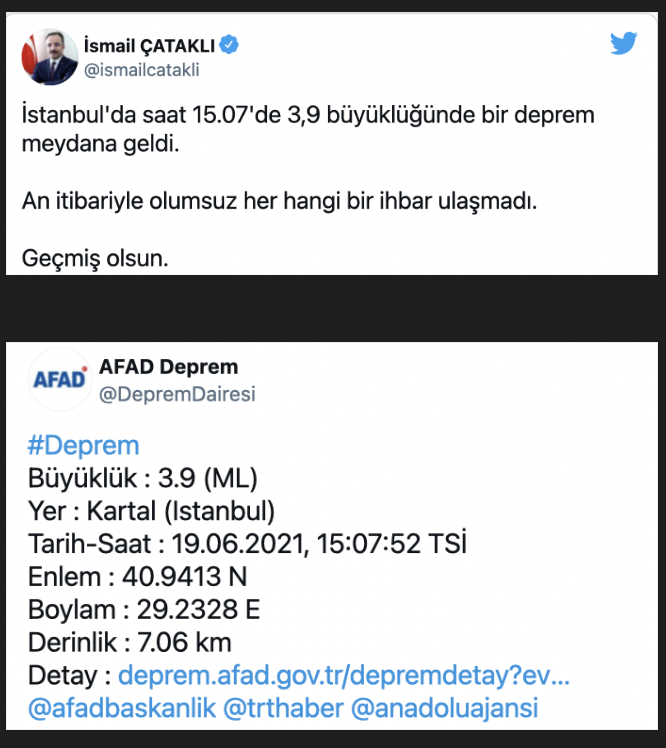 İsmail Çataklı’nın mesajında, “An itibariyle olumsuz bir ihbar ulaşmadı.” İfadeleri yer aldı.