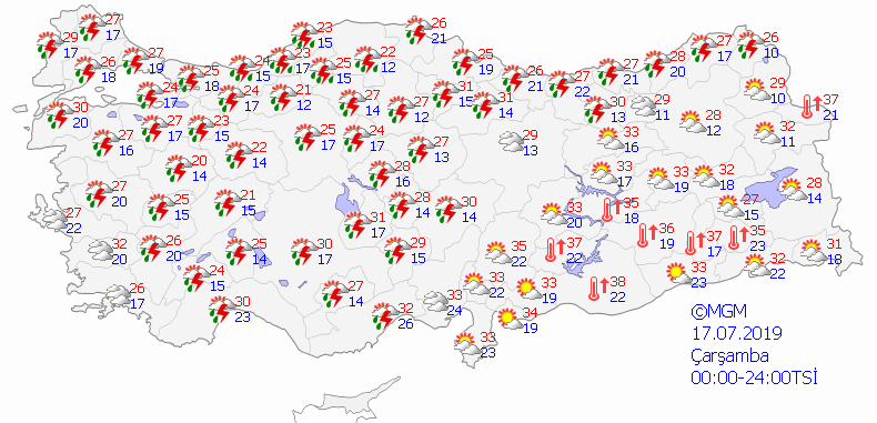 İŞTE HARİTALI TÜRKİYE GENELİ HAVA DURUMU