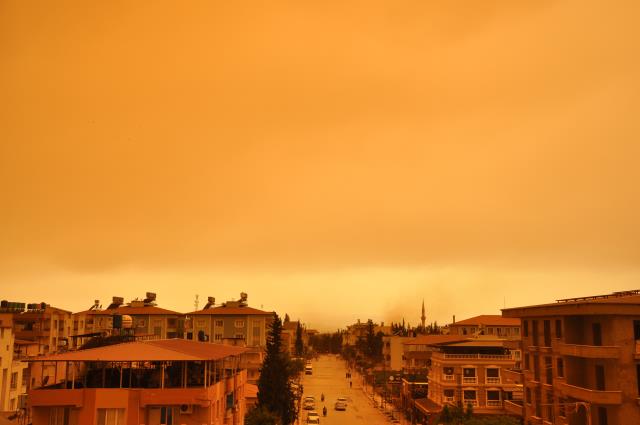 Meteoroloji tarafından gün içinde yapılan Suriye kaynaklı toz taşınımı uyarısı, etkisini göstermeye başladı. Şu ana kadar Adıyaman, Hatay, Şanlıurfa, Gaziantep ve Kilis'te toz bulutları etrafı kızıla boyadı.