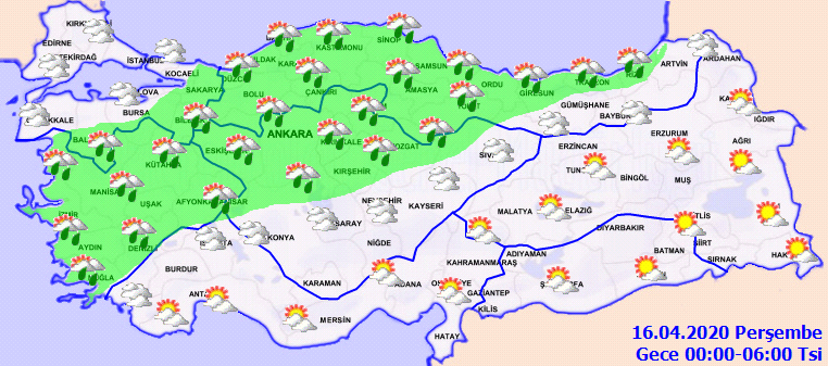16 Nisan 2020 Saat 00.00 ile 06.00 arası hava durumu