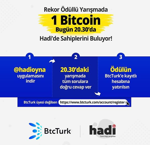 Hadi 'de bu akşam büyük ödül 1 Bitcoin.