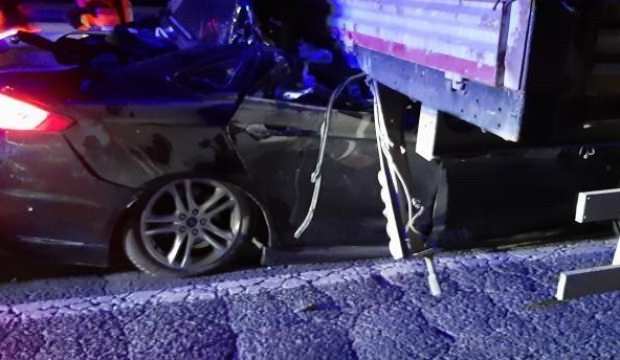 Otomobilin Tıra arkadan çarpması sonucu meydana gelen feci kazada , araç içindeki 2 kişi ağır şekilde yaralandı.